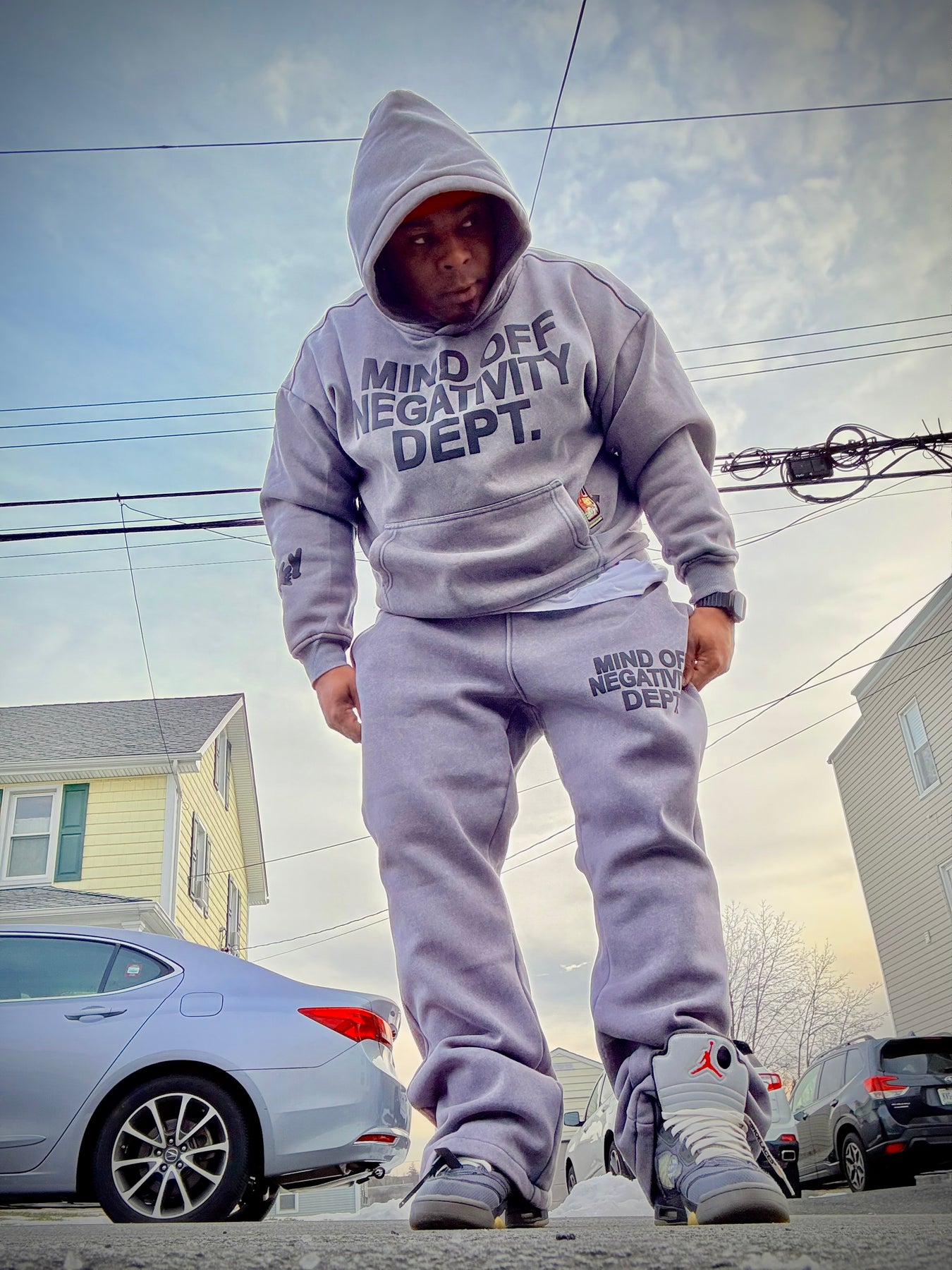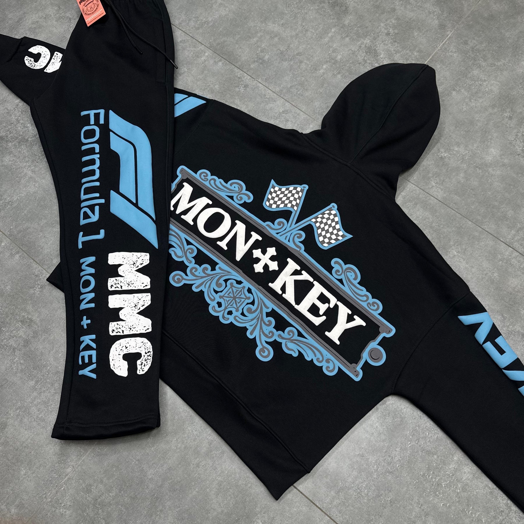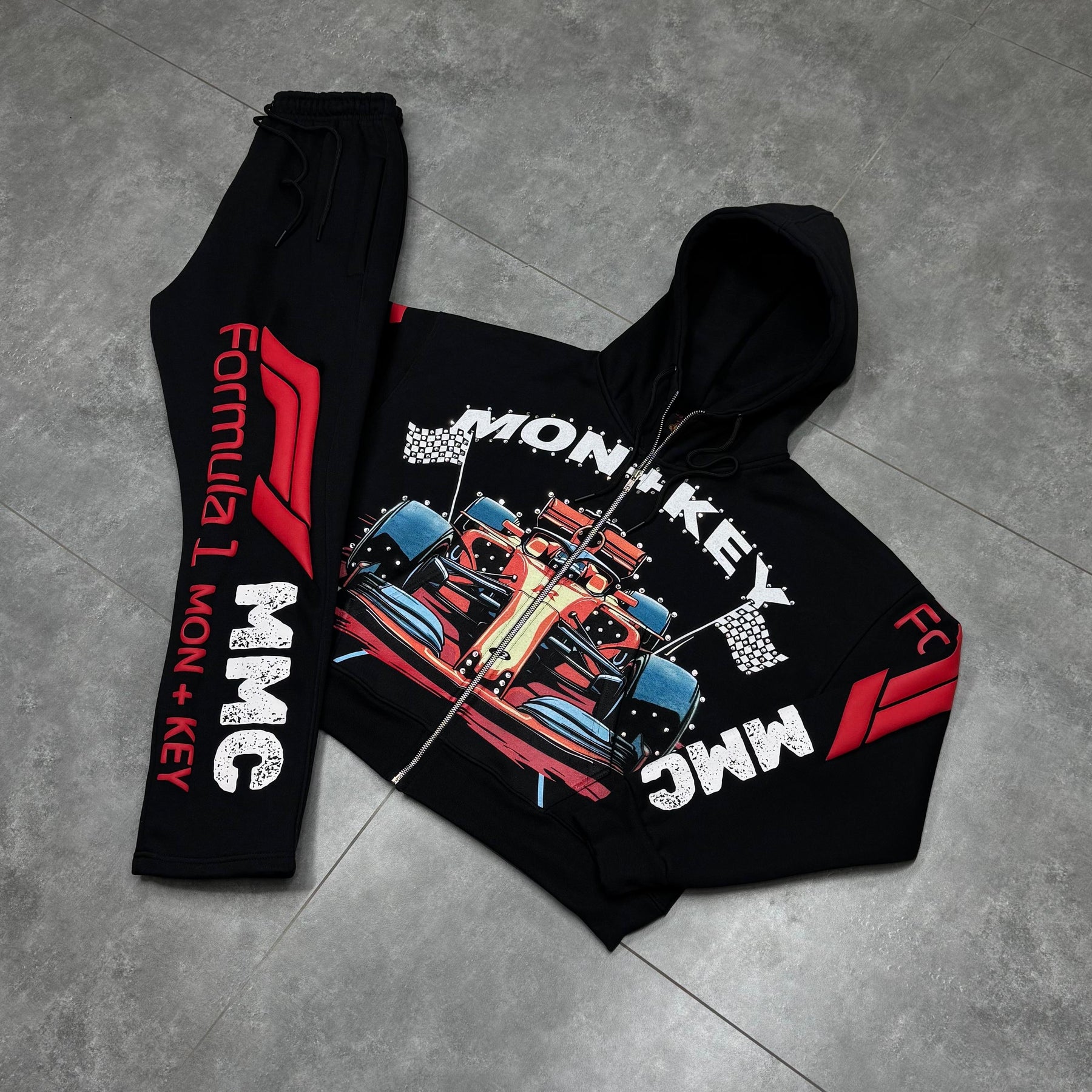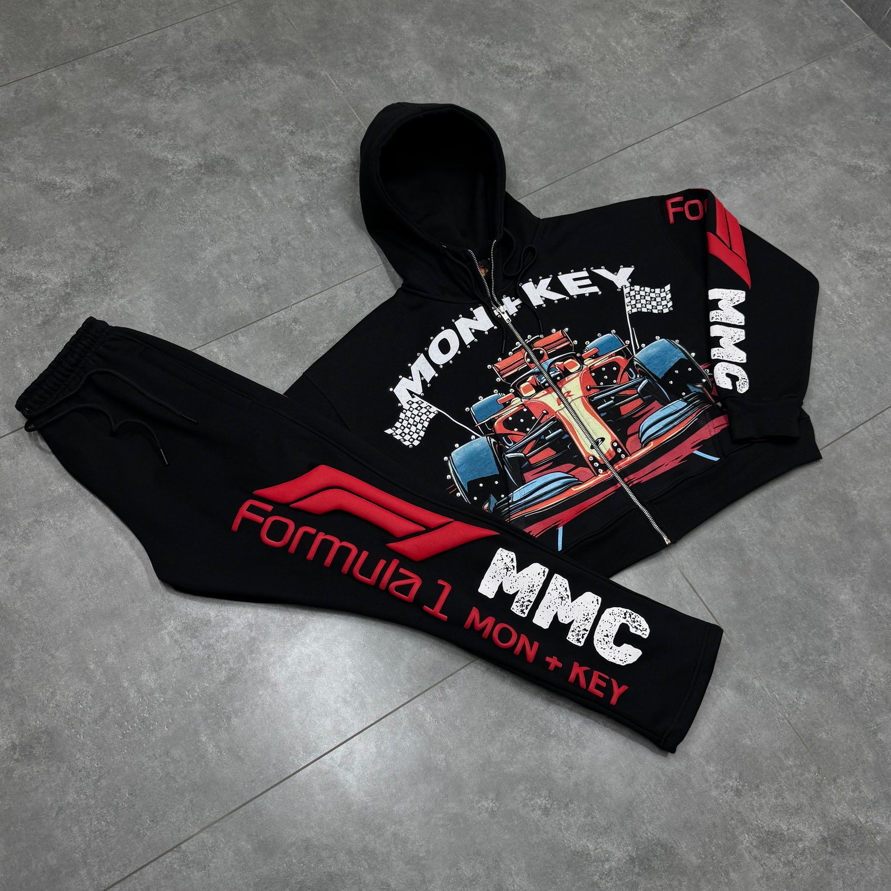 Hand placed rinds-tones all over front pocket hood .