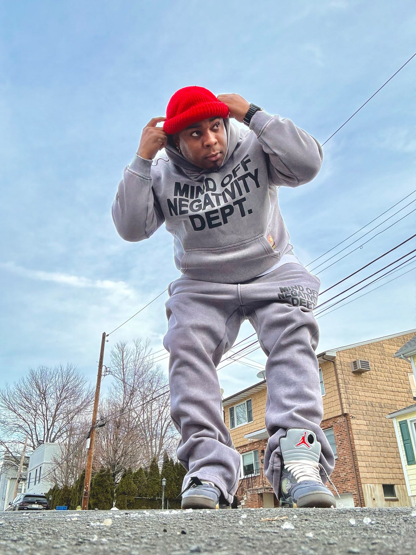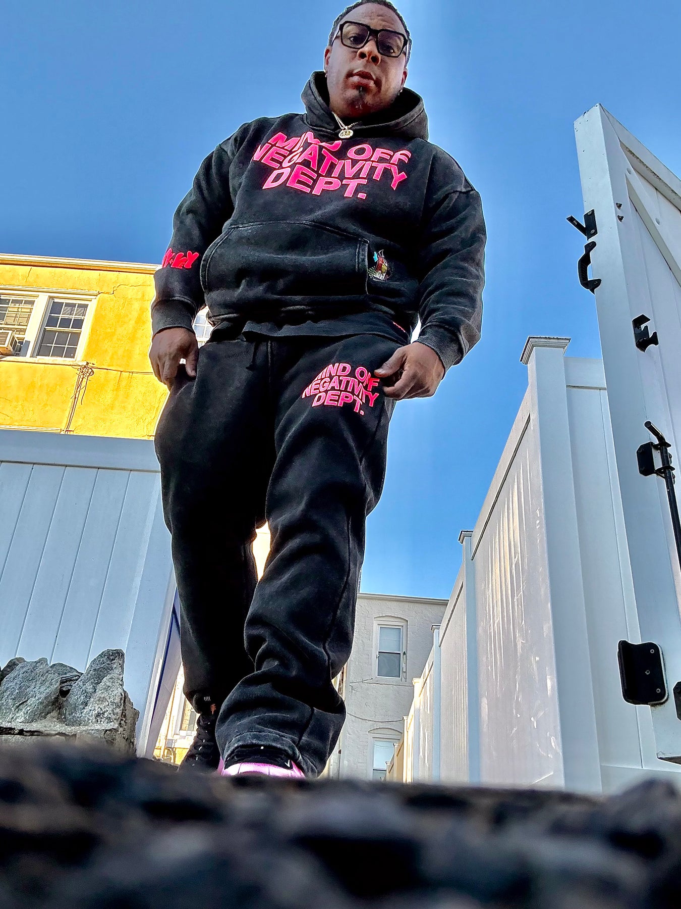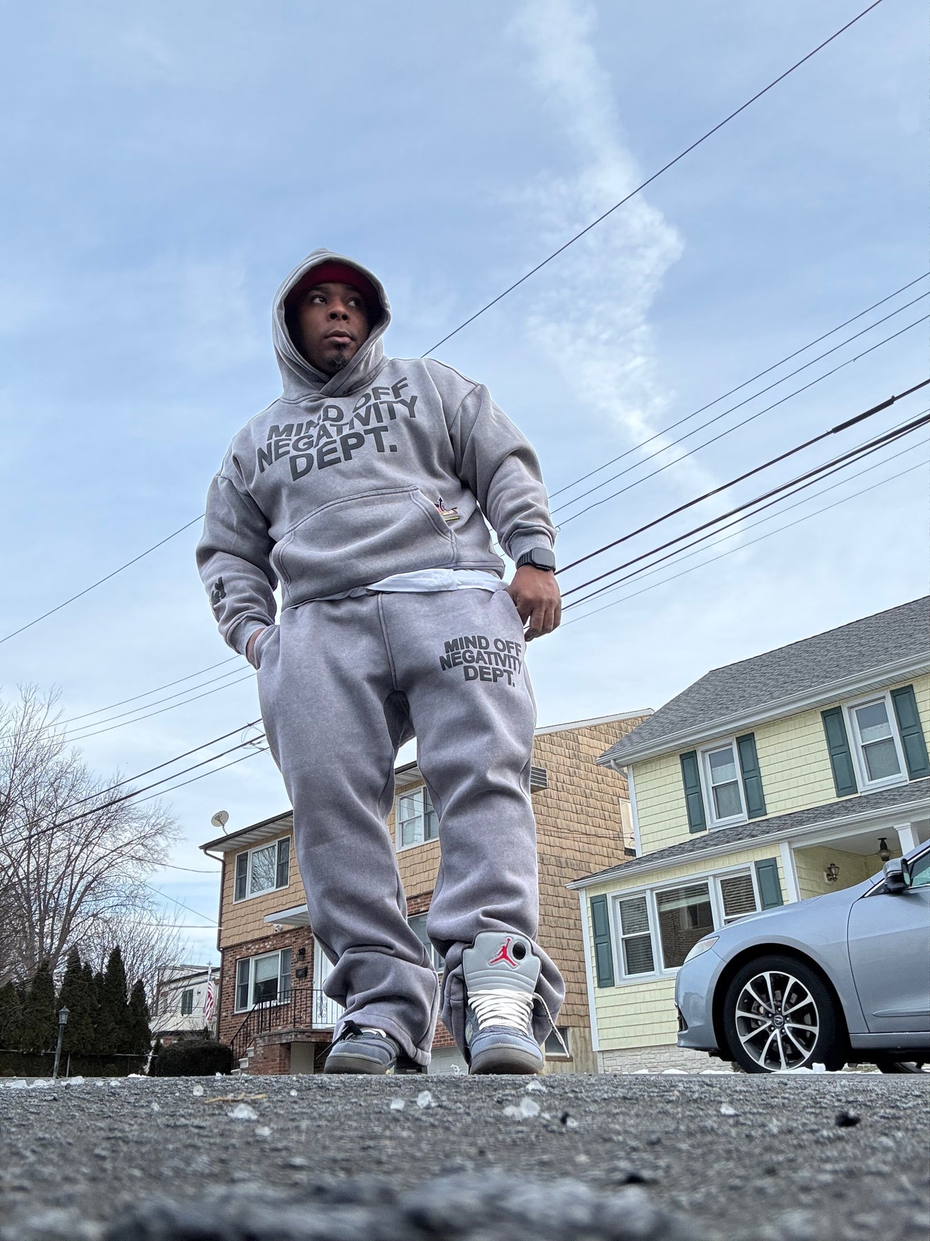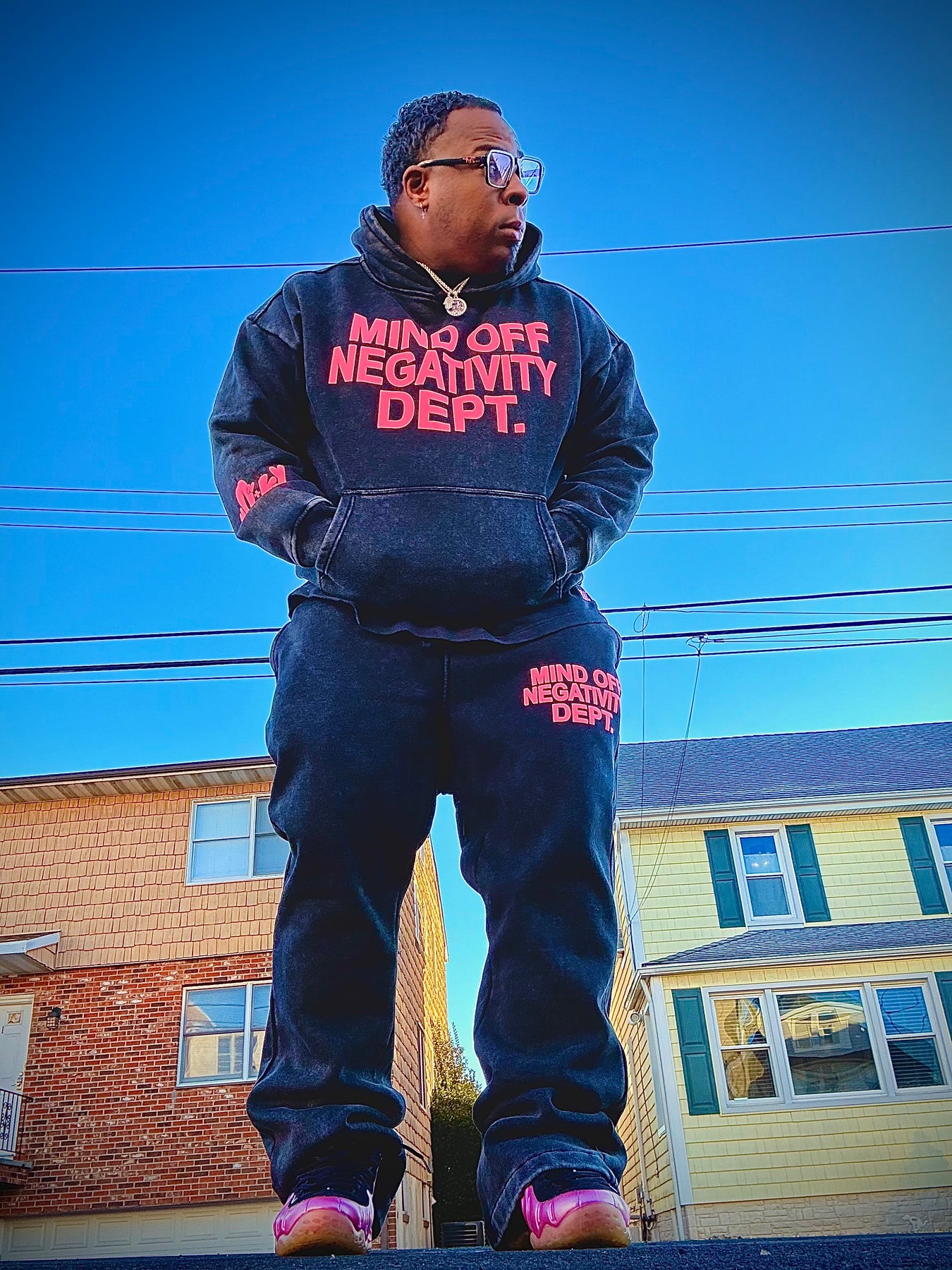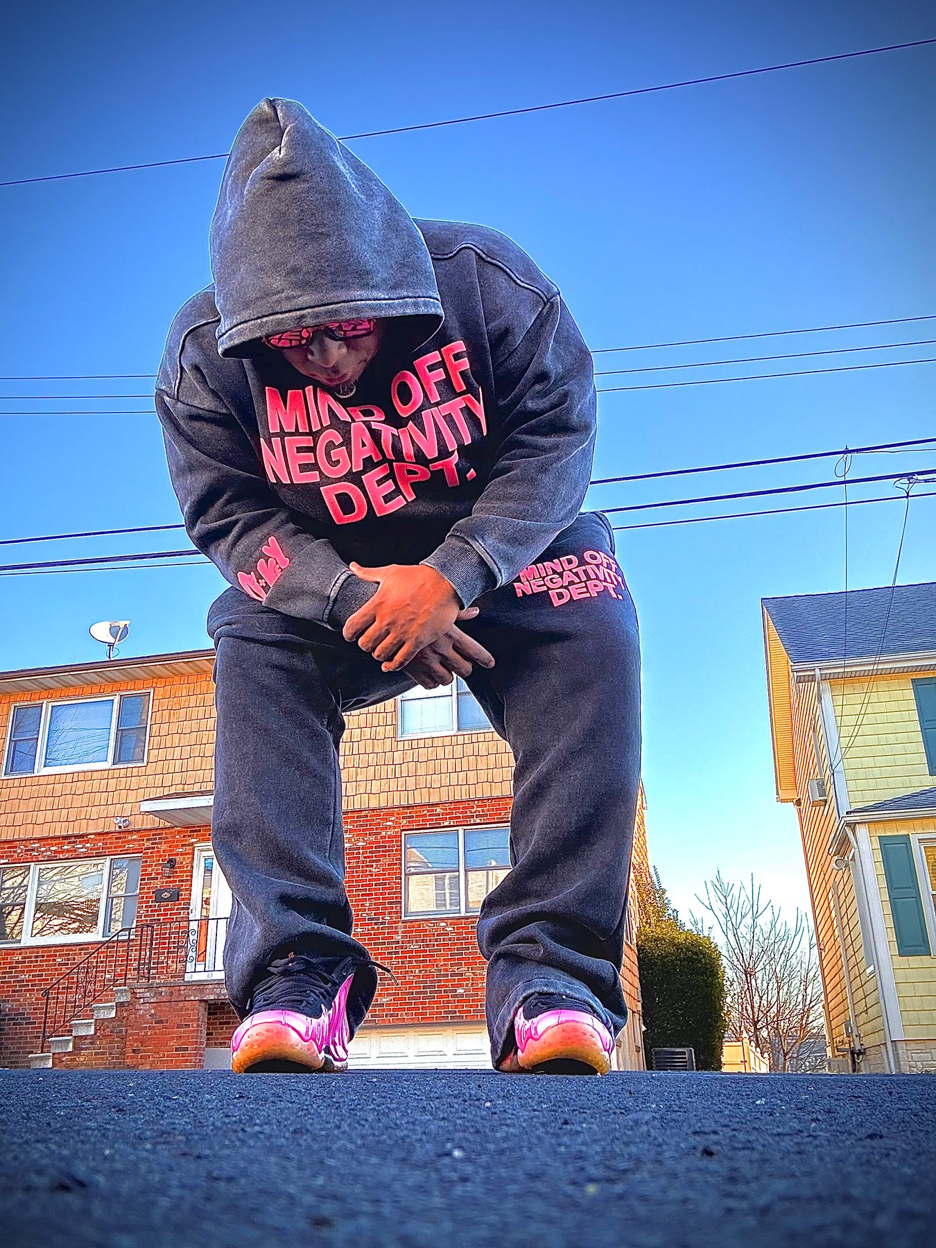 Hand placed rinds-tones all over front pocket hood .